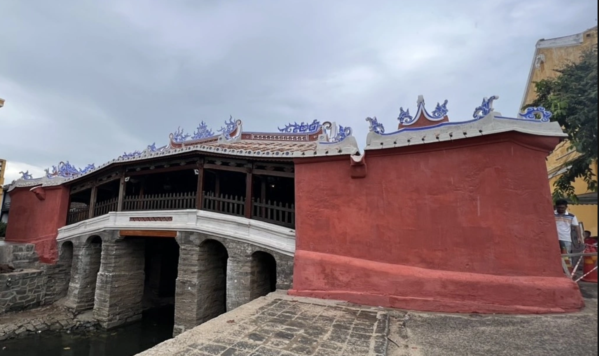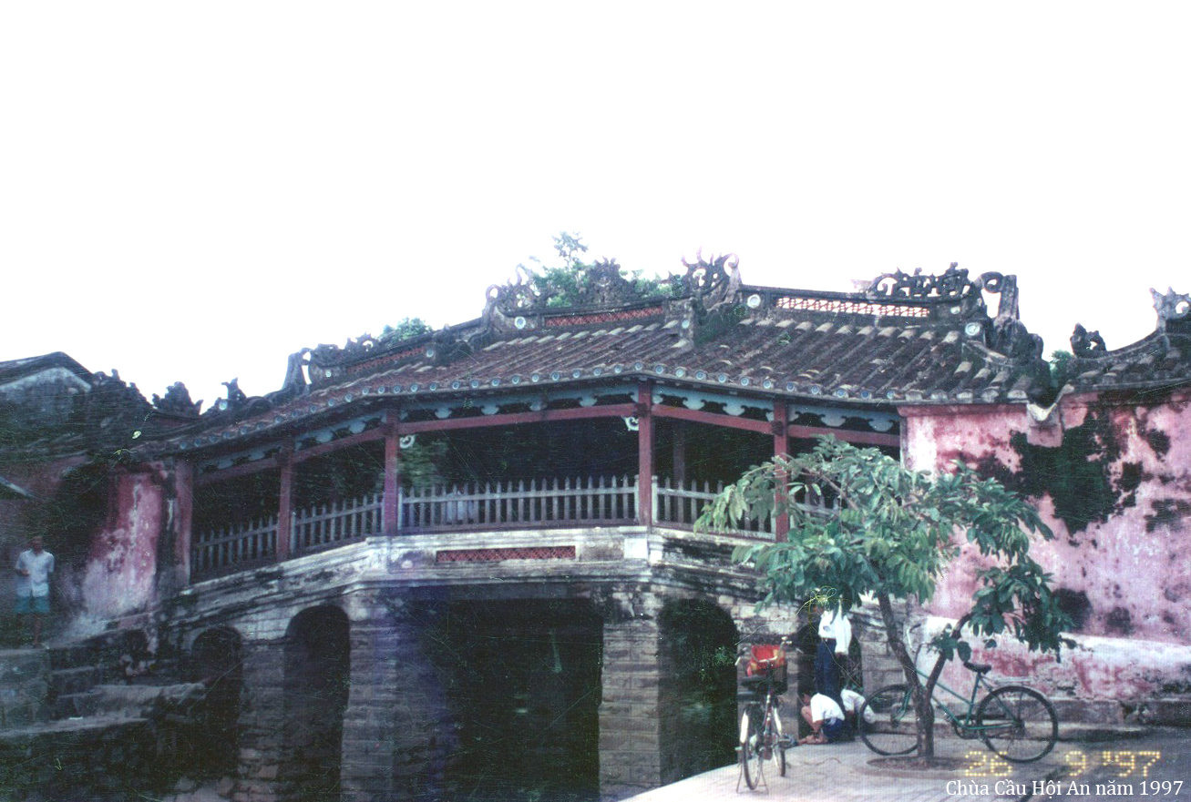 Diện mạo chùa Cầu Hội An chụp năm 1997 và chùa Cầu sau trùng tu gây tranh cãi vào 7/2024.