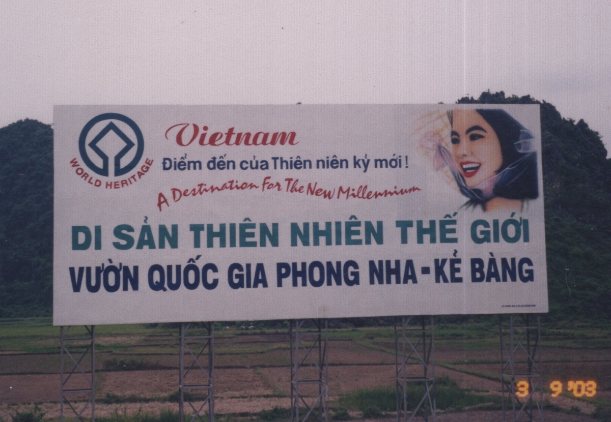 Trong ảnh là biển chào mừng tác giả chụp đầu tháng 9/2003 trùng thời điểm khu vực này được công nhận là di sản thế giới.