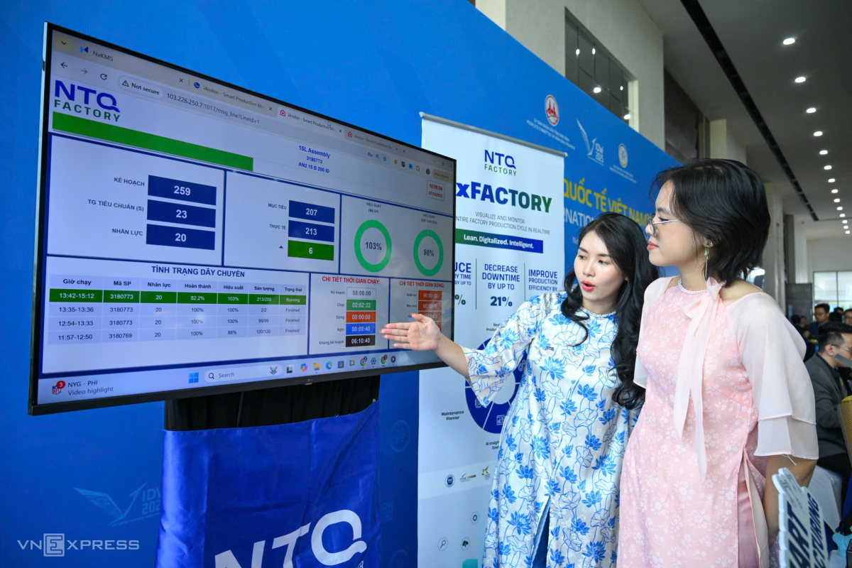 Công ty NTQ giới thiệu giải pháp NTQ Factory - hệ thống tự động hóa trong lĩnh vực nhà máy thông minh. Tại gian hàng, đơn vị này trình diễn việc quan sát thiết bị, máy móc dùng trong nhà máy, cũng như tính năng thu thập dữ liệu và cảnh báo hiện trạng sản xuất theo thời gian thực.