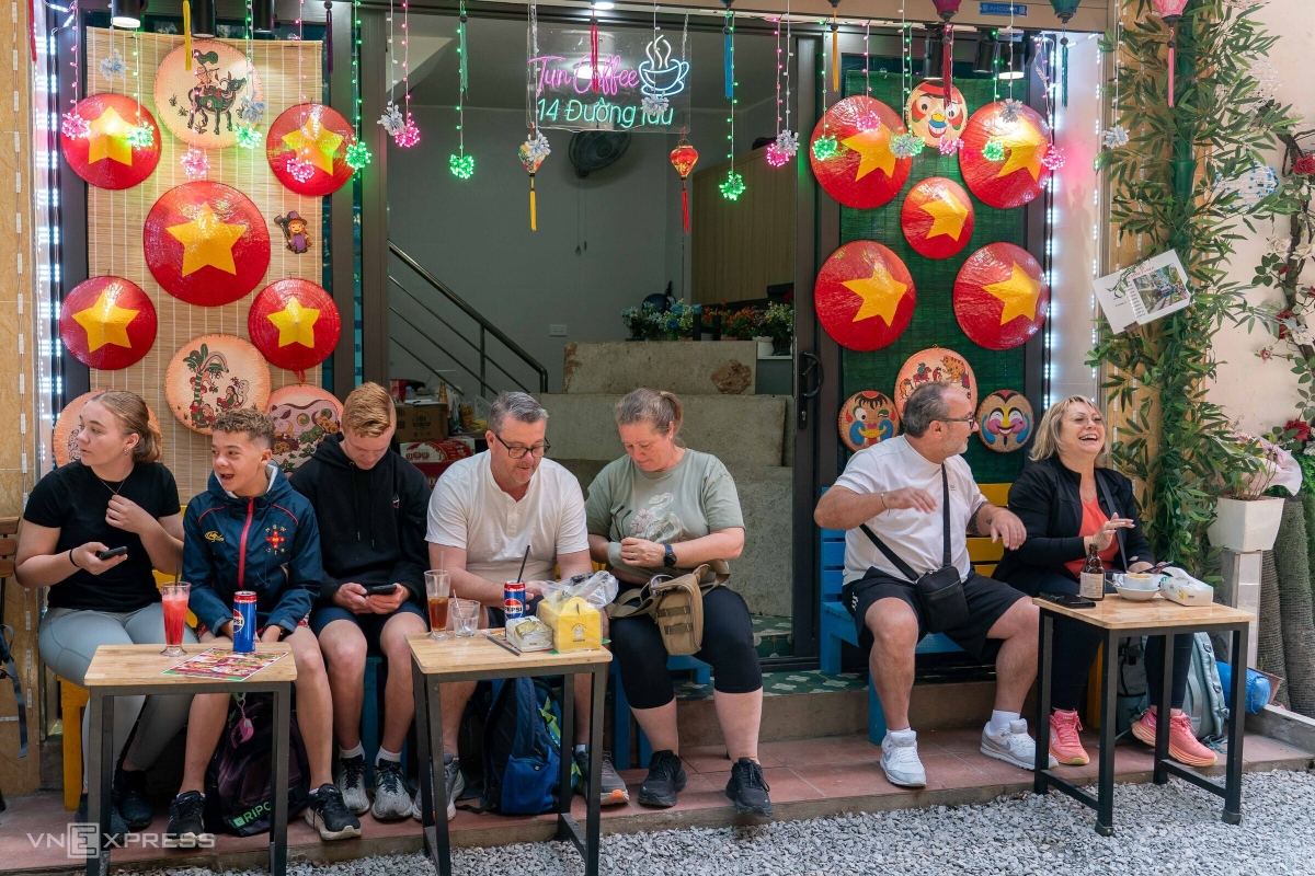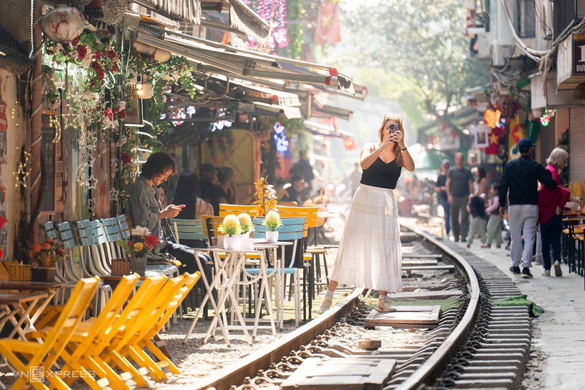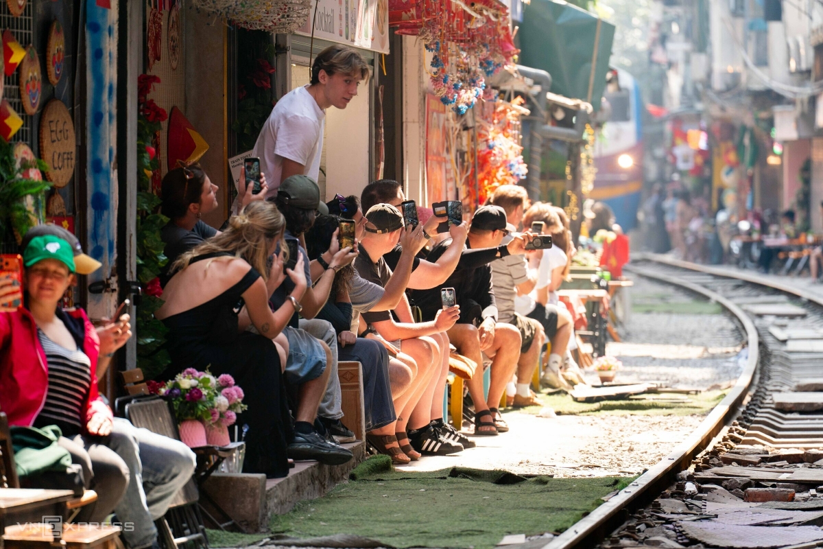 Hầu hết khách tới đây là người nước ngoài, muốn trải nghiệm khoảnh khắc tàu chạy qua. Các chủ quán liên tục mời chào khi thấy khách đi qua.