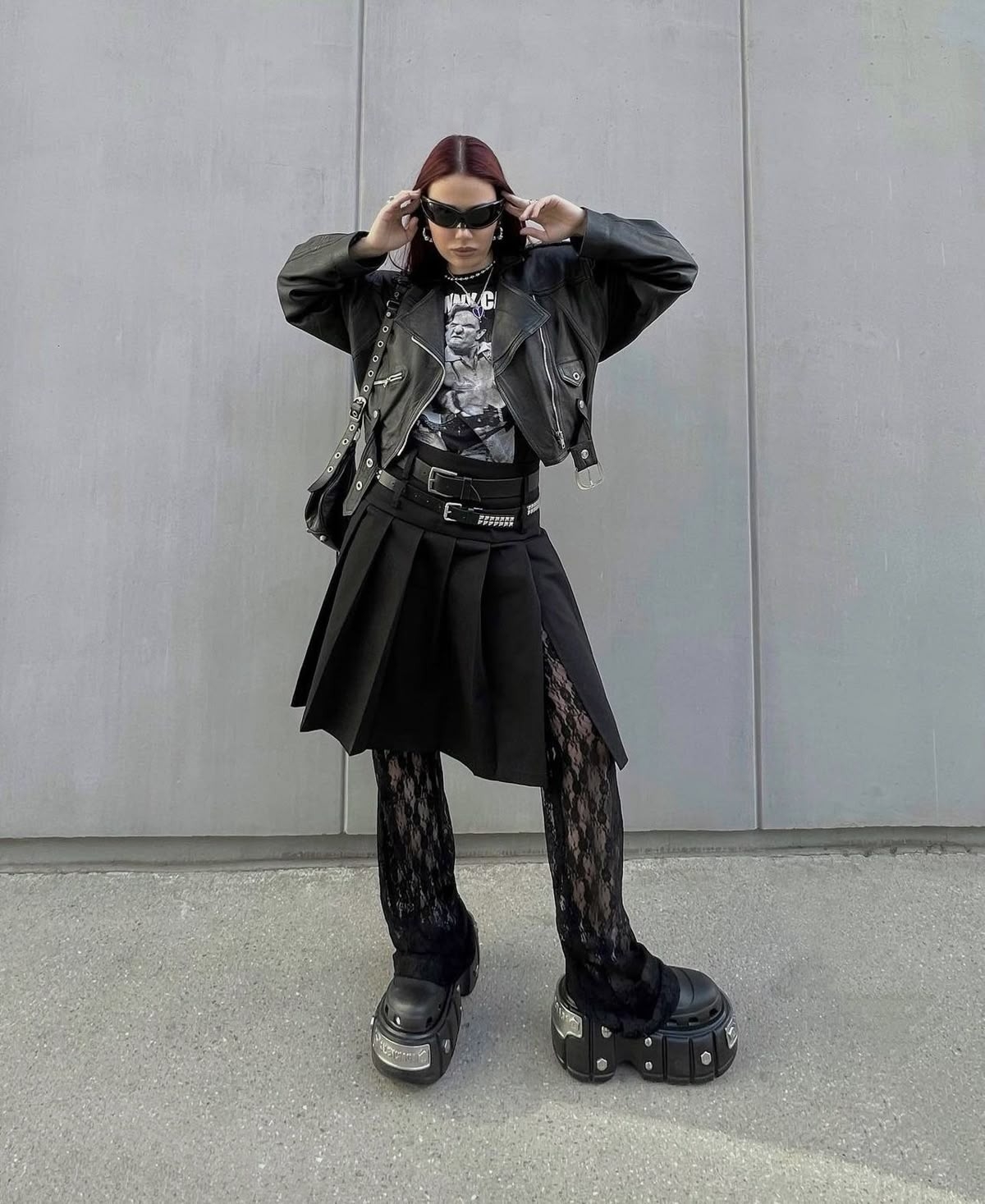 Dép Crocs quá khổ có thể đi cùng phong cách gothic, punk, mốt váy trùm quần của thập niên 1990.