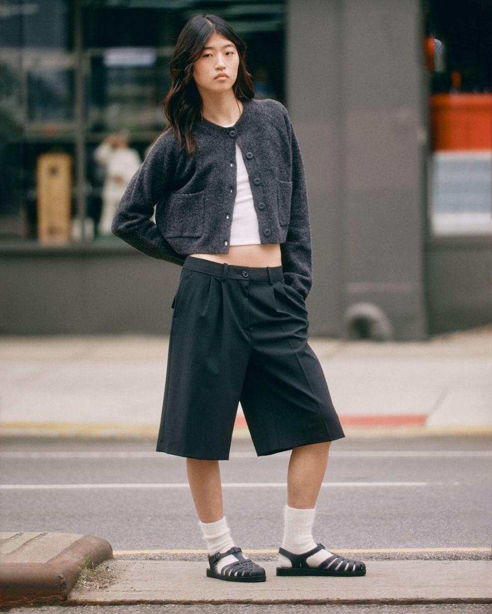 Cách phối dễ nhất là tông xuyệt tông. Hãy thêm tất đồng màu với dép "cục gạch", kết hợp chân váy ngắn hoặc quần shorts denim, áo polo hoặc áo phông, crop top, thể hiện sự năng động.