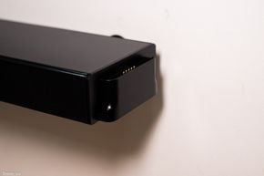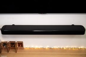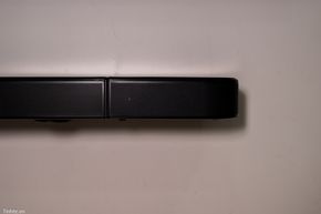 Cuối cùng, đó là soundbar màu đen tuy đẹp nhưng lại dễ bám vân tay, thiết kế mạnh mẽ nhưng lại chưa quá cao cấp so với một số sản phẩm khác.